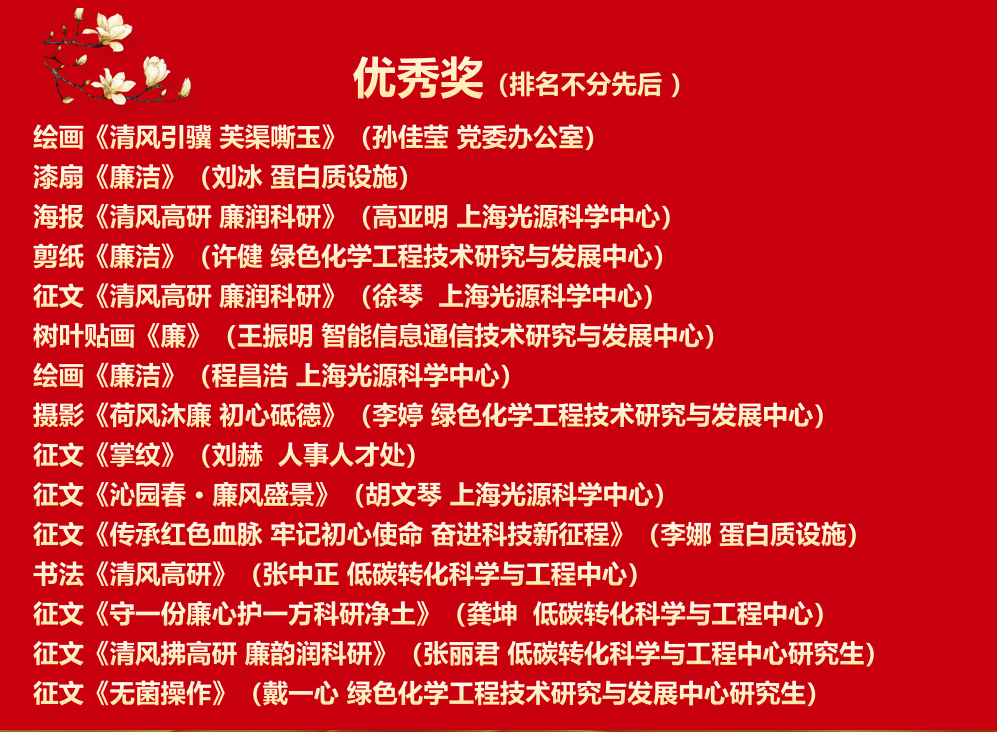 会议对巅峰国际第五季“清风徐来 执笔为廉”廉洁文化作品征集活动的获奖人员进行了表彰。本季活动在巅峰国际内部共征集作品50余件,涵盖书法、绘画、摄影、剪纸、篆刻、瓷贴画等多种形式,内容丰富、风格多样,生动展现了职工和学生对廉洁主题的深入思考和个性化表达。经过三轮评选,最终遴选出25件优秀作品予以表彰。会议强调,要持续用好这一文化阵地,继续擦亮特色鲜明的廉洁文化品牌,拓展表现形式和传播载体,让廉洁文化入脑入心,不断巩固风清气正的科研生态。